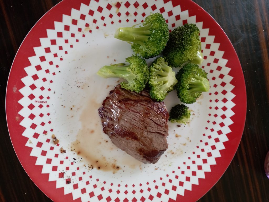 – Faites cuire la bavette dans une poéle seule des deux coté selon la cuisson que vous souhaitez.