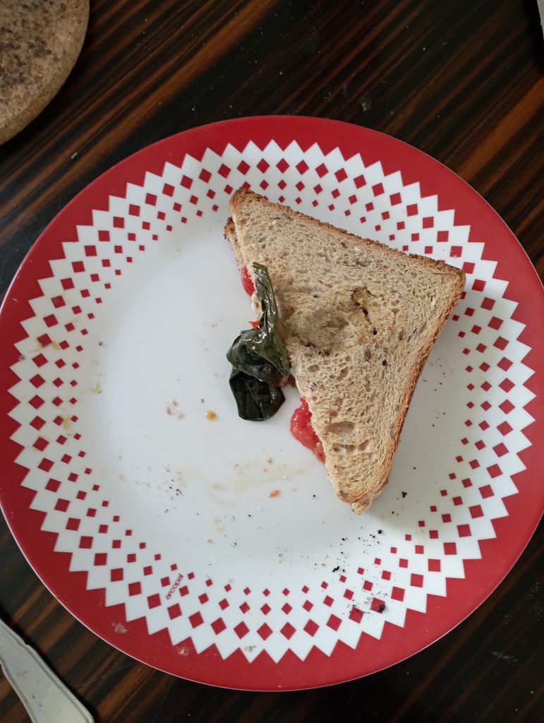 3- Couvre les quatre tartines de mozzarella, de tomate et de basilic. Sale, poivre, et couvre avec les quatre autres tartines. Presse un peu les croque-soleil.