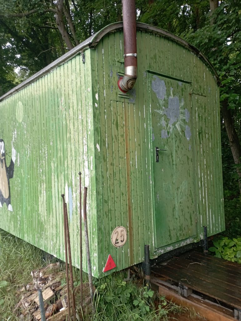 Le logement était un Bauwagen, une sorte de caravane censée être gemütlich (confortable), mais qui s’est révélée plutôt ungemütlich. Le sommier était si dur qu’il me faisait mal aux jambes, et le chauffage consistait en un petit poêle que je devais allumer moi-même — ce qui me prenait parfois deux heures. Une fois en marche, il chauffait… beaucoup trop.