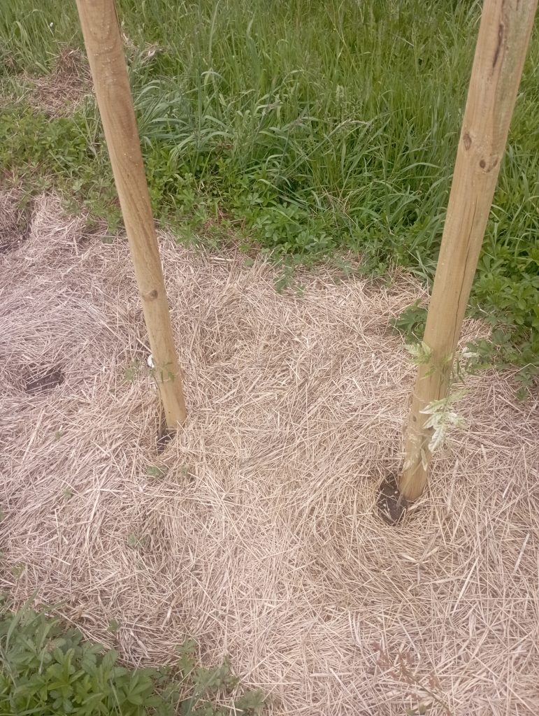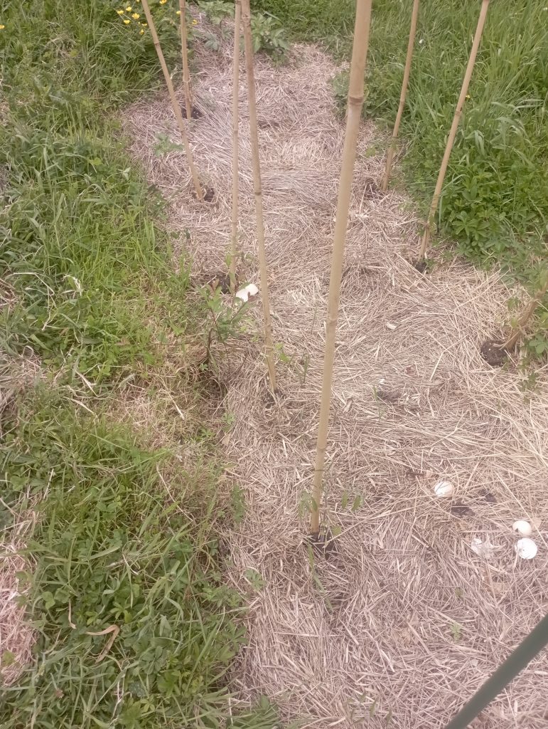 Le framboisier je suis obligé de l’encerclé avec du fils sinon il tombe partout.