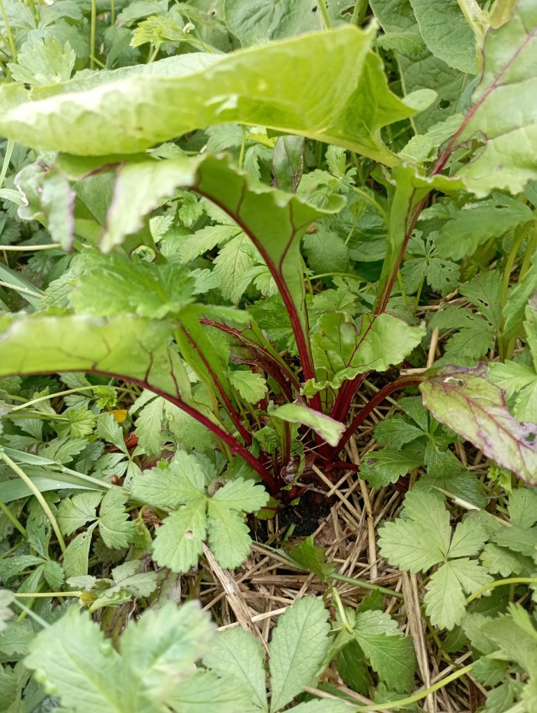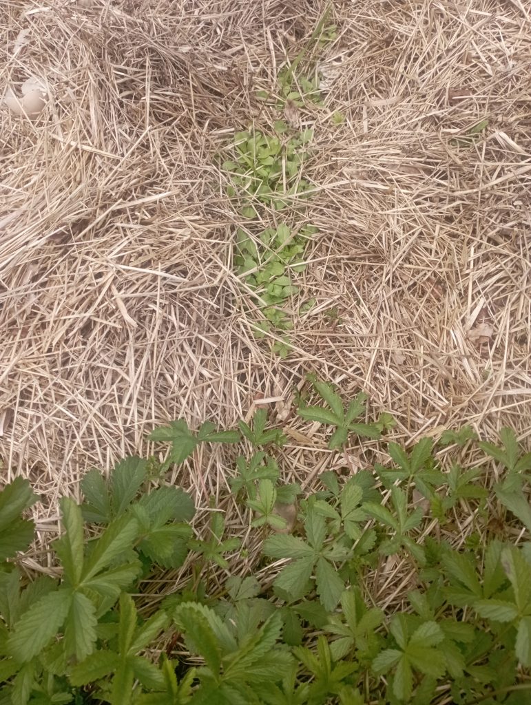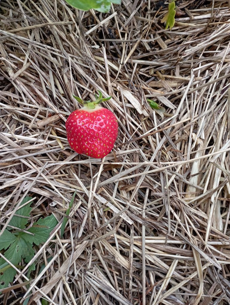 C’est pas de la fraises mais fait intéressant c’est de la betterave au début elle était dans un sale état elle se faisait bouffé par les limaces . Et voila qu’elle est protégé par les pommes de terre et elle se trouve à merveille .