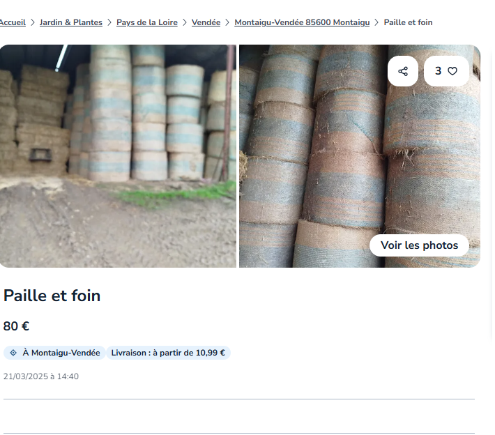 Mais je sais que ce n’est pas facile à trouver et que le foin a un certain prix. C’est pourquoi je vous recommande de passer par Le Bon Coin pour trouver des agriculteurs qui en vendent.